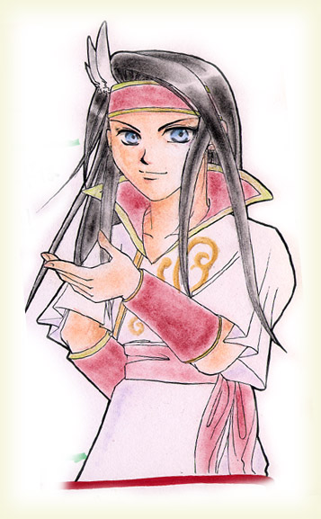 | '06.1.29イベントにて机上に出していたトレード看板用イラスト。 看板自体はこの趙雲と、UC孫権、UCイク様との3点1枚なのですが スケブの方がスキャナより大きいという実質的な理由を主に(笑) 分解した方が絵としては大きく見れるので分けました。 上記3名の中で誰よりも‘攻’に見える、という 不本意なコメントを頂いた一品。 でも、不本意なコメントは中々もらう機会がないので、 技術向上の為にも今後とも宜しくお願いします(w こんな趙雲ですがやっぱり受(だから何) そういえば、新R趙雲て「シャーマンキング」のシルバに 似てる…私が描くと; (製図インク・パステル) |
