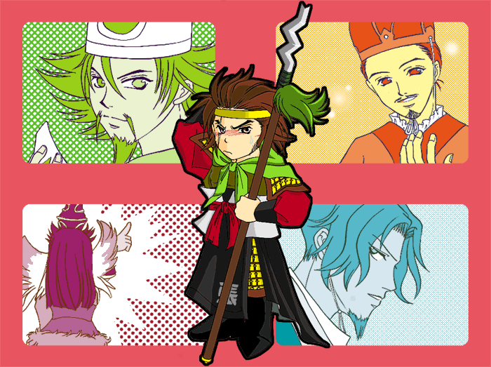 | 現在使用中のデッキメンバー。 COMの黄巾オンリーデッキにも苦労する面子ですが 稀にハマるといい働きをするのがSR曹操・SRカク・Rイク様… って何で荀イクだけ様付けなんだ、ワシ; R張飛のカードは籠手の辺りが黒なので 手持ちの水墨画画集の配色を参考に配置。 それにしてもR張飛カードはクリスマスカラーでかわいいv ソソ様の羽は『ロミ+ジュリ』のクレア・デーンズみたいなのを想像して描いてますが、 どちらかというと肩の金具に乗せてある感じですよね。 ま、肩に乗せると腕を上げた時に大変な目に遭いそうなので 背中寄りにしておきます…そっちの方が描き易いし(w; 覚書的なキャプションであった。 (Photoshop5.5) |